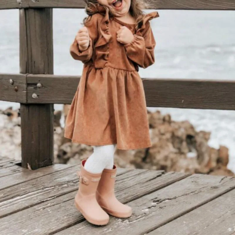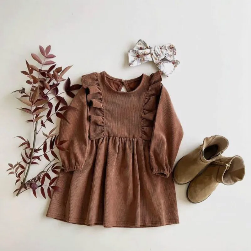 Product Name: New 2019 Ins European and American Baby Autumn Dress Winter Girls Corduroy Ruched Infant Cotton Dress Girls Cute Dress,#5377