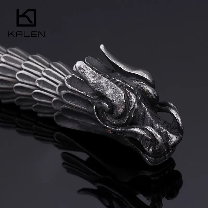 Special Offer KALEN Punk Animal Dragon Head Charm Bracelet Men Stainless Steel Black Matte China Dragon Blessing Bracelet Bangle Jewelry Discount 29% Today!