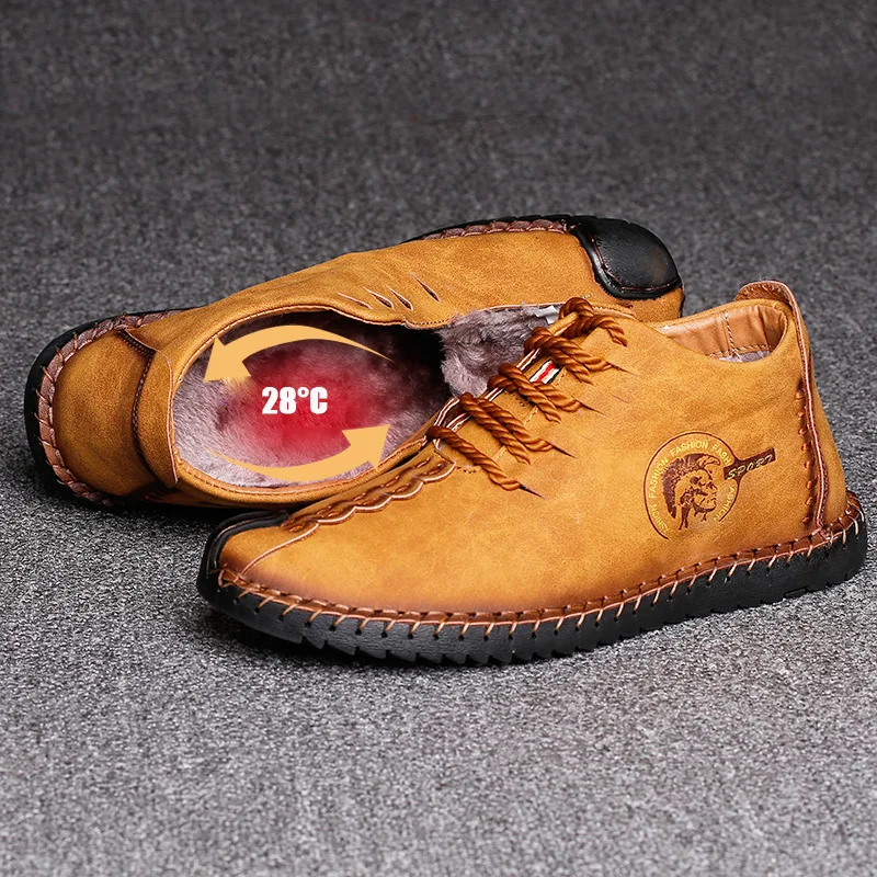 Special Offer Valstone Hot sale Winter Men s Leather Casual sneakers large size 48 vintage Frosty boots High Top warm shoes khaki black golden Discount 55% Today!