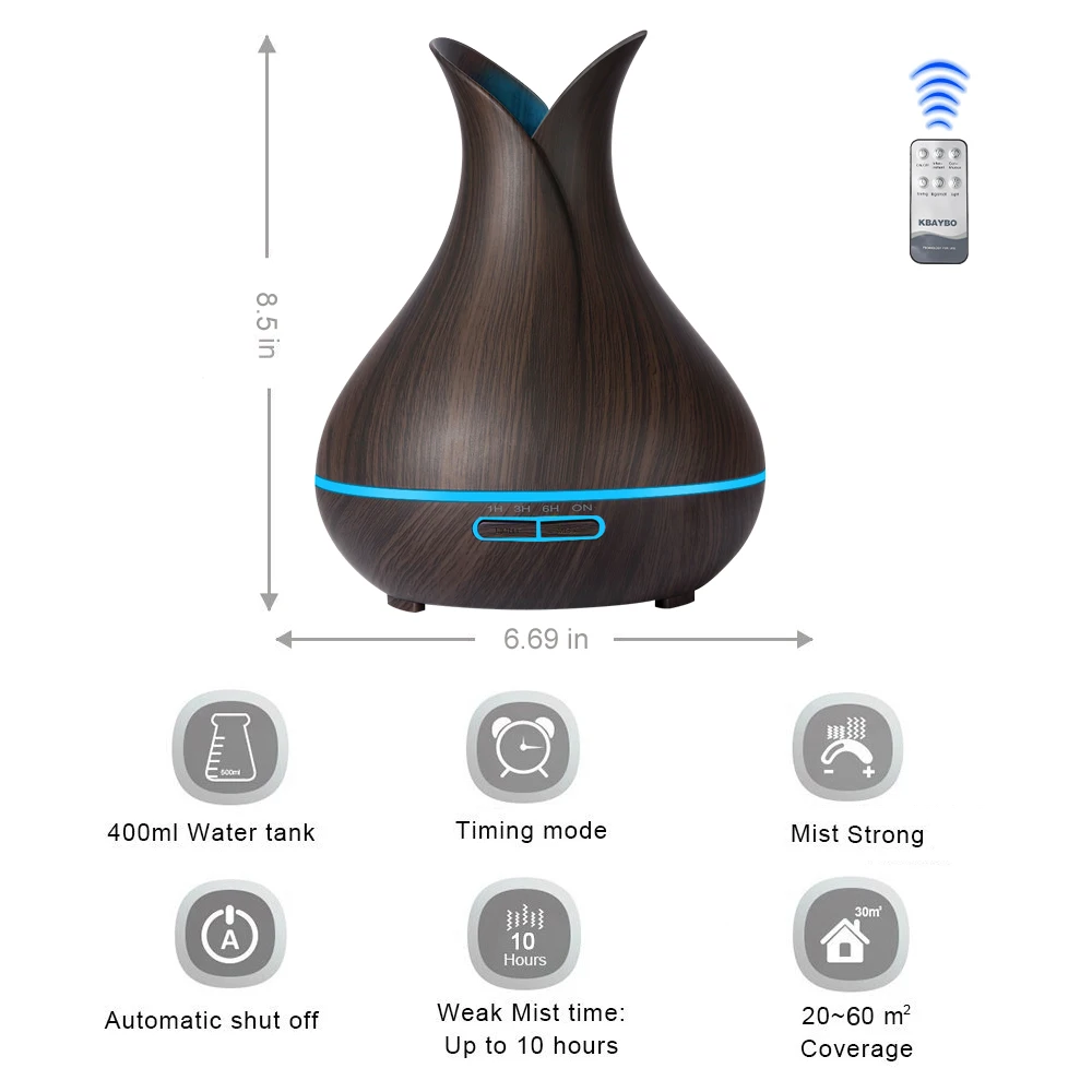 Product Name: KBAYBO 400ml electric Ultrasonic Aroma Air humidifier Essential Oil Diffuser Wood Grain purifier mist maker LED light for home