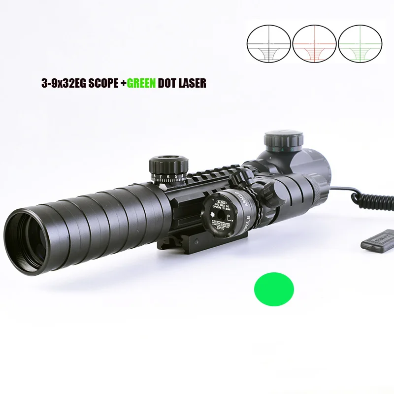 Special Offer Tactical 3 9X32EG Riflescope Long Range Red Dot Laser Red Green Dot Holographic Reflex Sight 3 in 1 Combo for Rifle Airsoft Discount 11% Today!