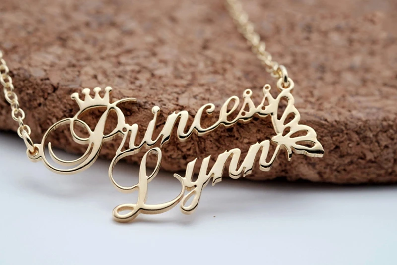 Special Offer Custom Crown Double Name Necklace Personalized Gold Color Butterfly Pendant Necklace Stainless Steel Jewelry Gifts For Women Discount 20% Today!