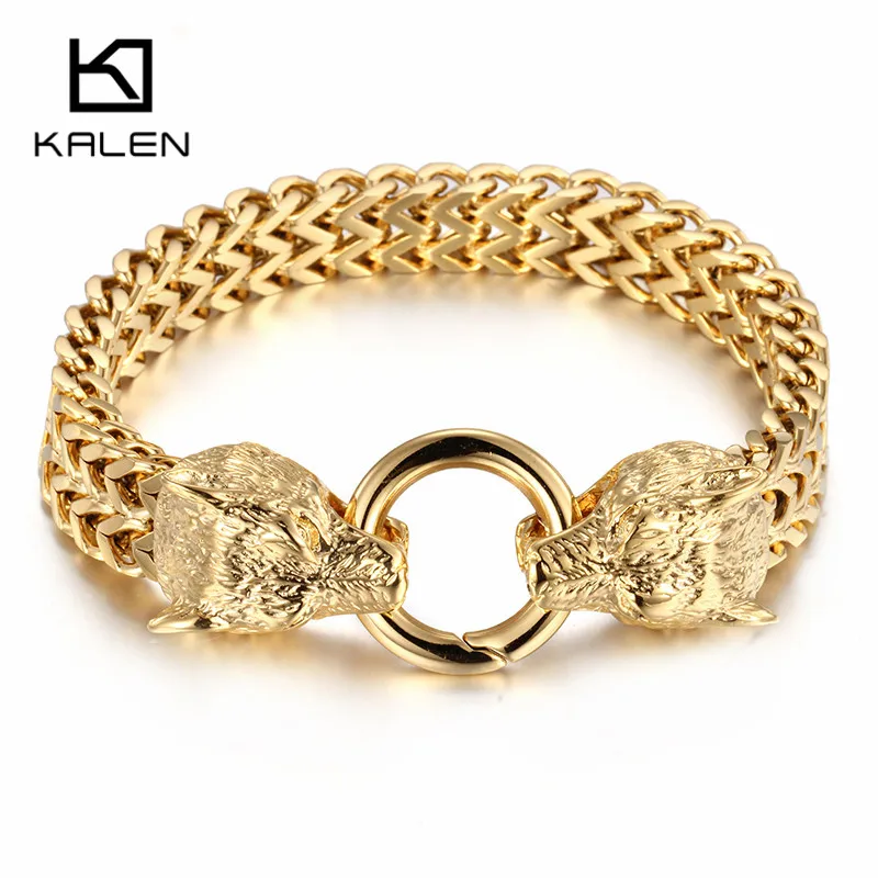 Special Offer KALEN Rock Viking Wolf Charm Bracelet Men s Stainless Steel 20.5cm 22.5cm Mesh Chain Gold Wolf Punk Bracelets Biker Jewelry Discount 29% Today!