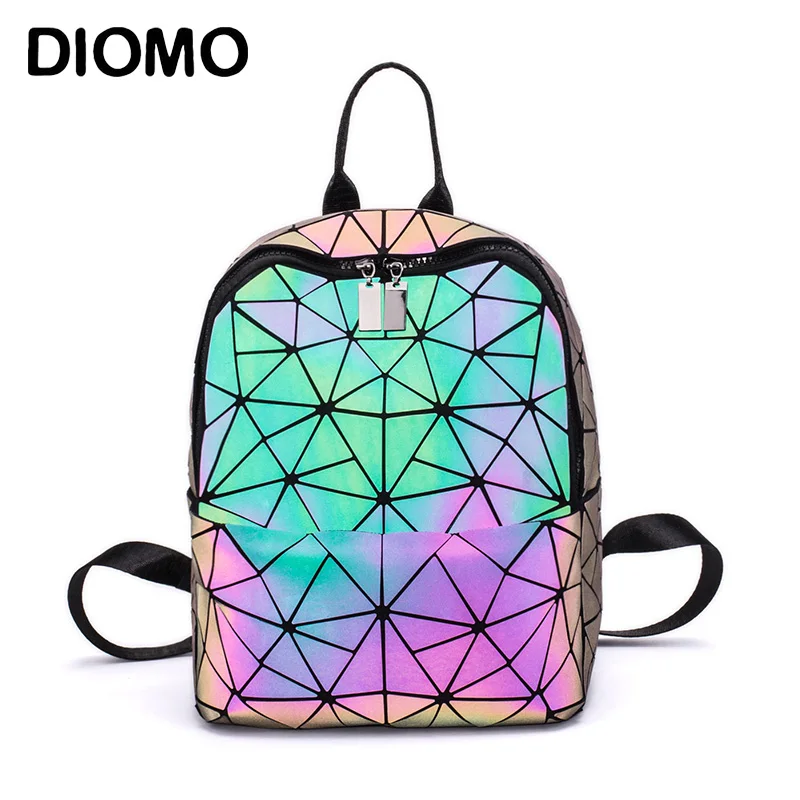 Special Offer DIOMO Fashion Women Backpack Luminous Shining Geometric Triangle Small Daypack for Girls Bagpack rugzak Discount 37% Today!