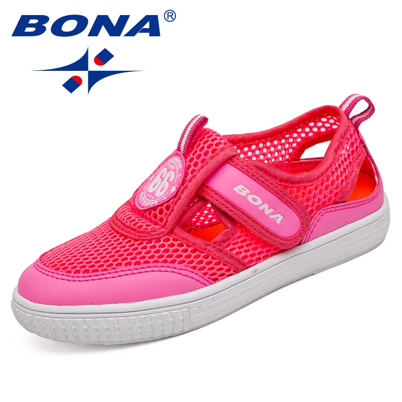 Product Name: BONA New Fashion Style Children Casual Shoes Candy Color Mesh Upper Boy Girl Sneakers Hook Loop Kids Shoes Free Shipping