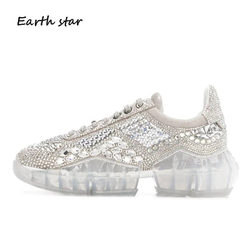 Special Offer Casual Bling Shoe Women zapato de mujer Crystals White Sneaker Platform chaussures femme Rhinestone Real Leather Fashion Shoes Discount 41% Today!