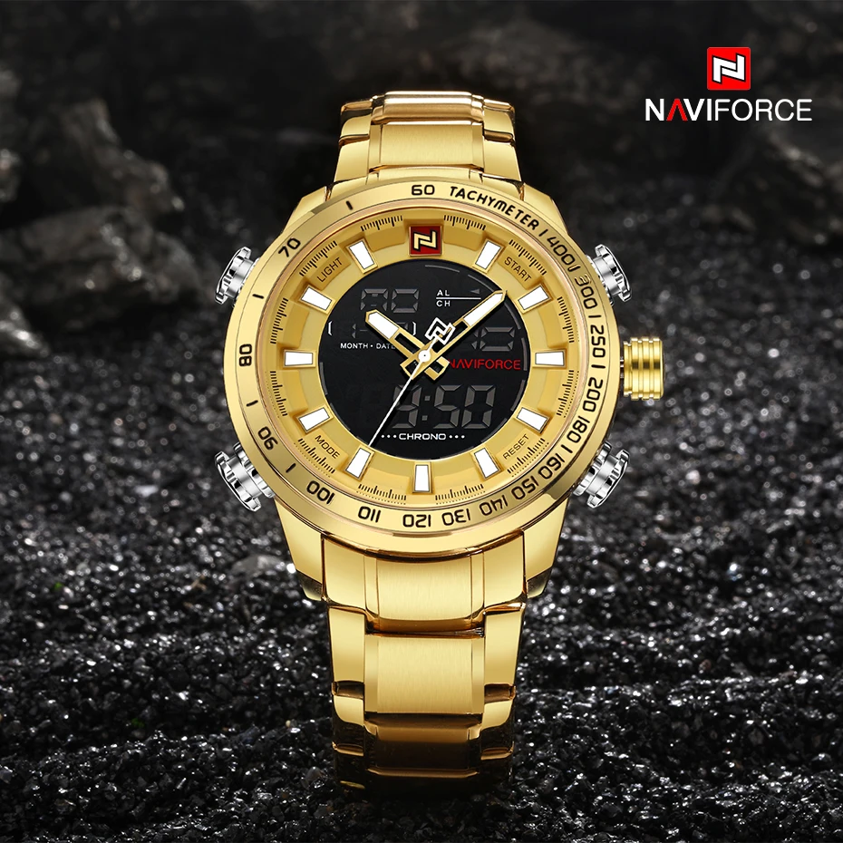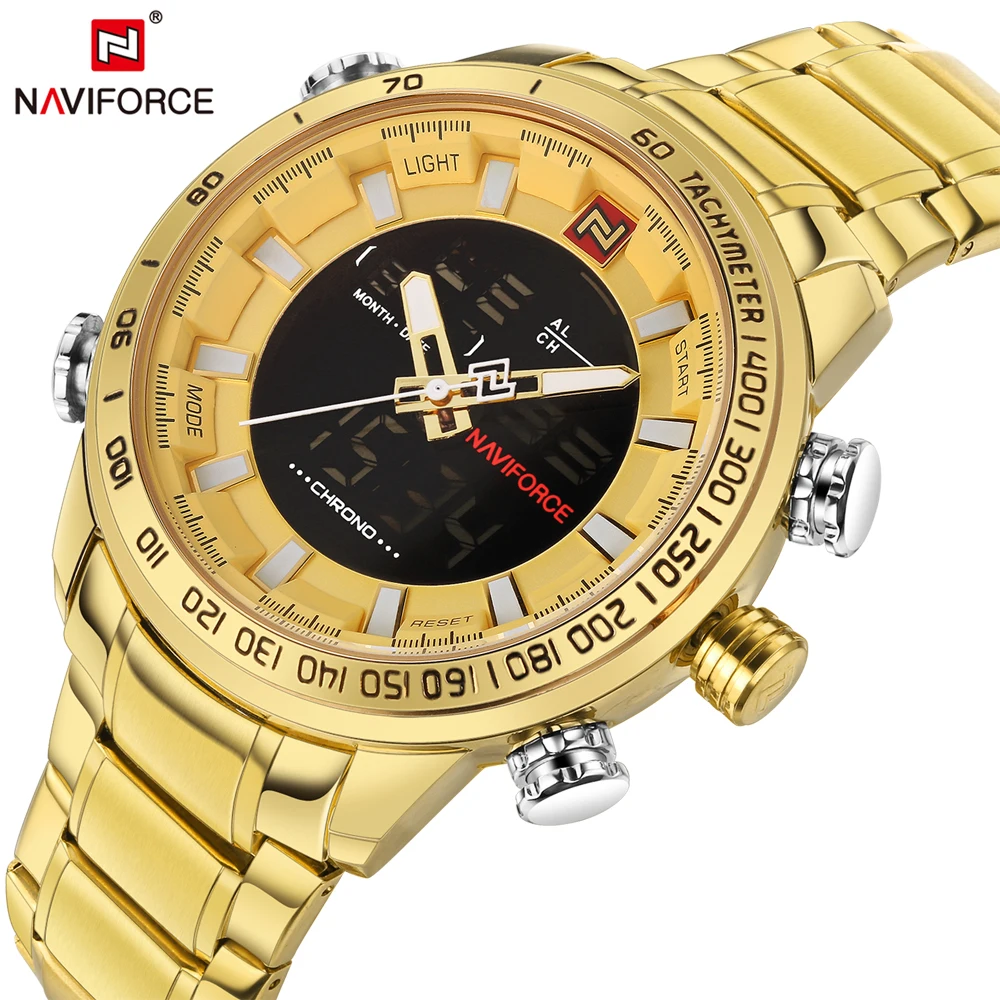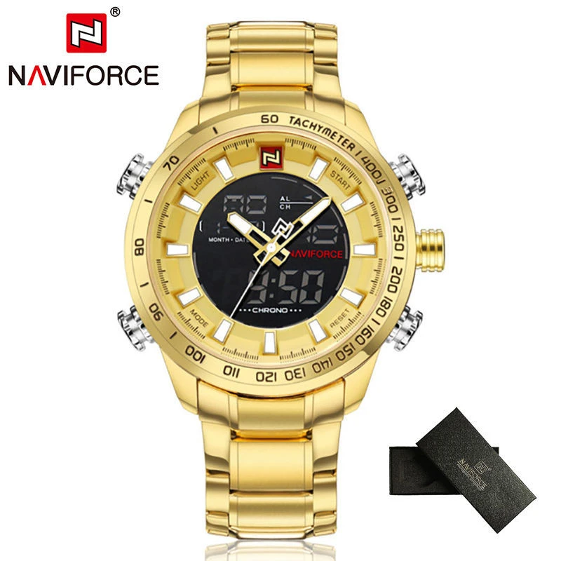 Product Name: NAVIFORCE Top Brand Mens Gold Quartz Watch Clock Men Army Military Sports Watches Man Full Steel Waterproof relogio masculino