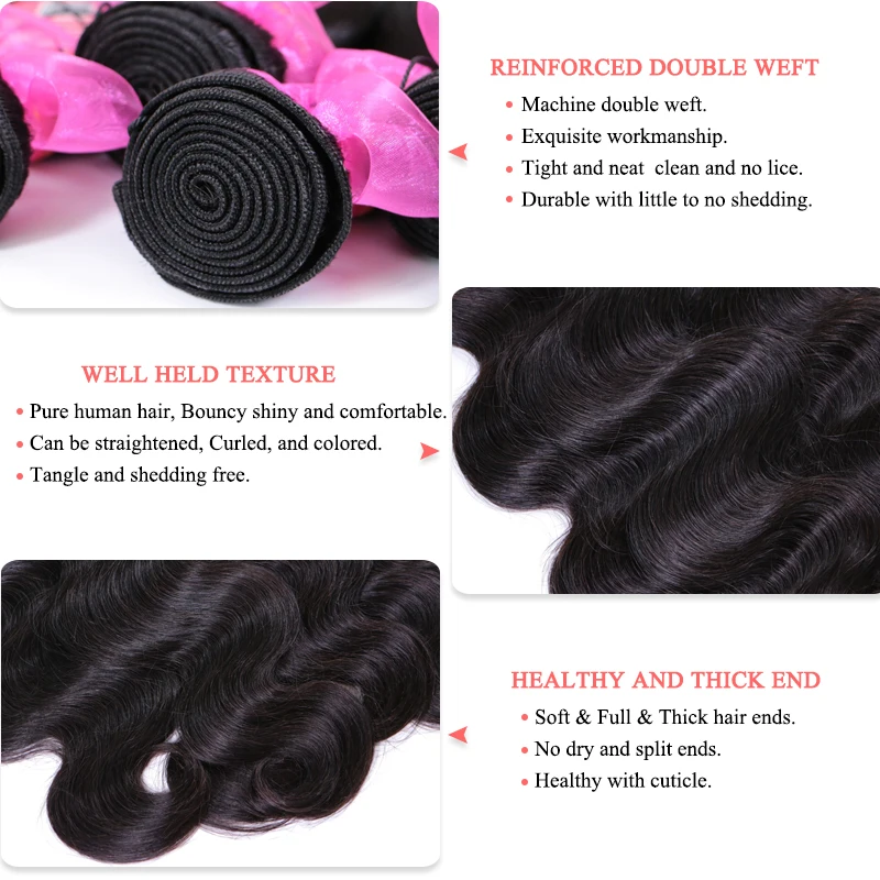 Product Name: Queen Hair Brazilian Hair Weave Bundles 3PCS Body Wave Virgin Human Hair Extension Products Natural Color FAST SHIPPING