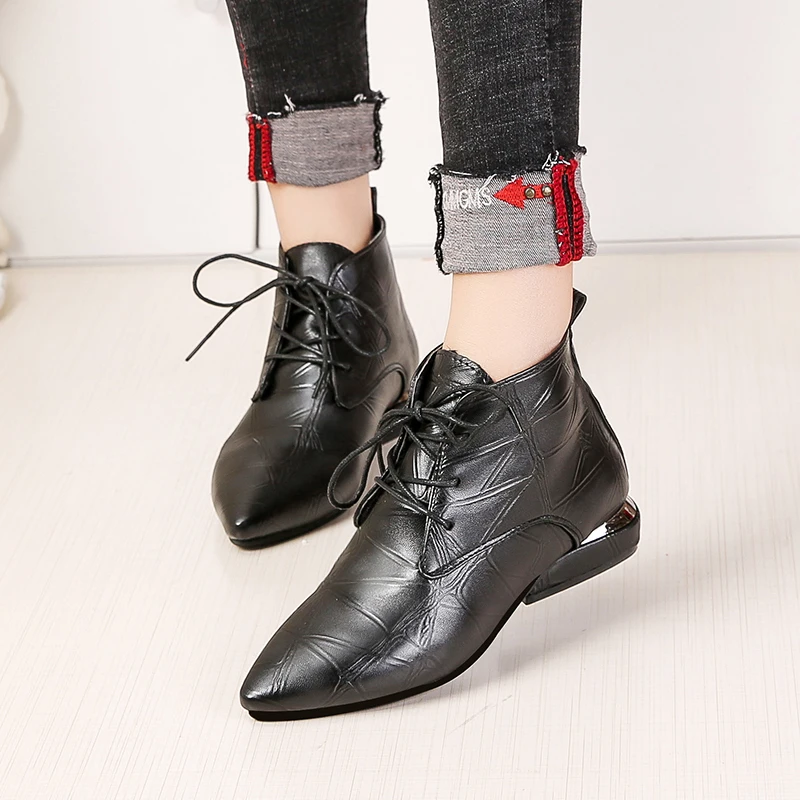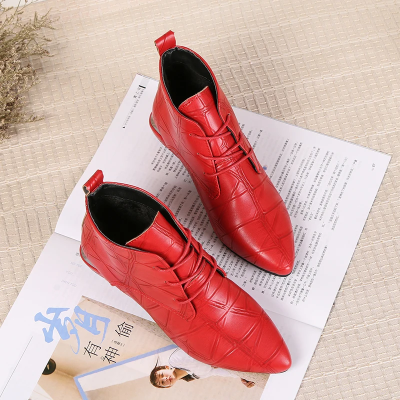 Product Name: 2019 Fashion Women Boots Casual Leather Low High Heels Spring Shoes Woman Pointed Toe Rubber Ankle Boots Black Red Zapatos Mujer