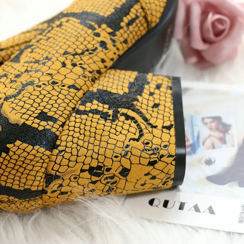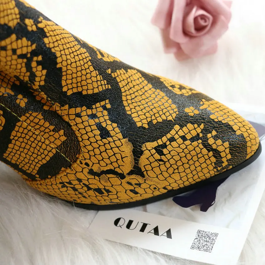 Product Name: QUTAA 2020 Fashion Serpentine PU Leather Slip On Long Boots Square Heel Comfort Winter Women Over The Knee Boots Size 34 43