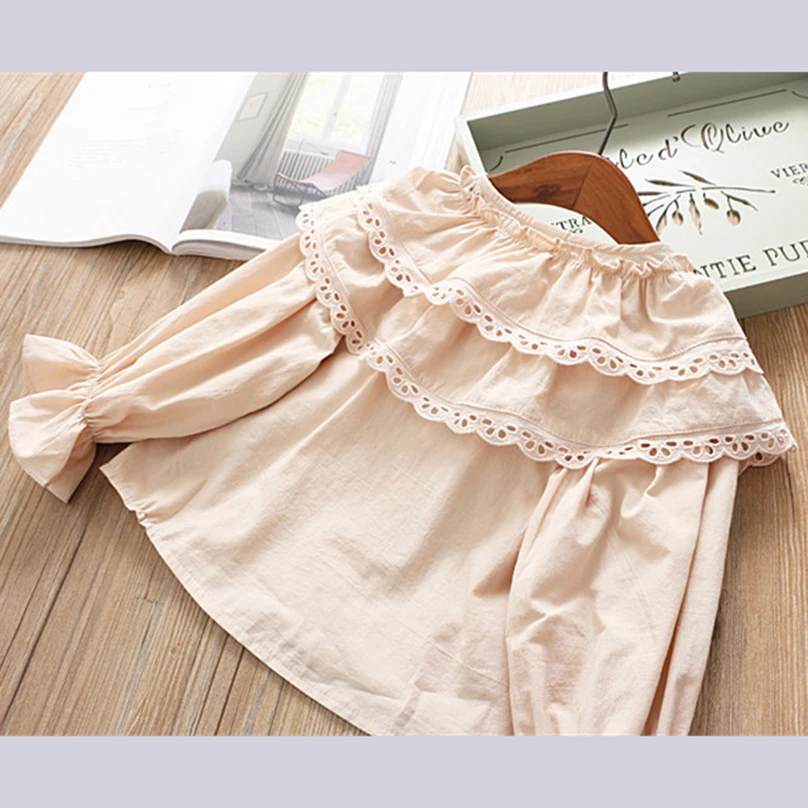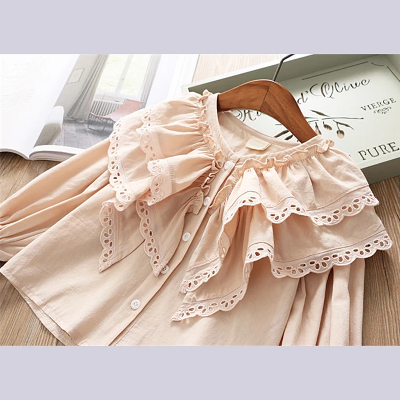 Product Name: White Pink lace shirt for girls school blouse long sleeve Turn Down collar princess costumes toddler girls shirt kids tops 2 7t