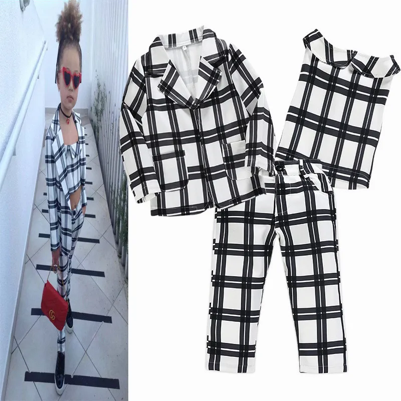 Best . (40% Off) Buy Kids fashion clothes Girls plaid vest + coats +pants 3 pcs clothing sets children s ins Europe and America suit sets Cheap Online.