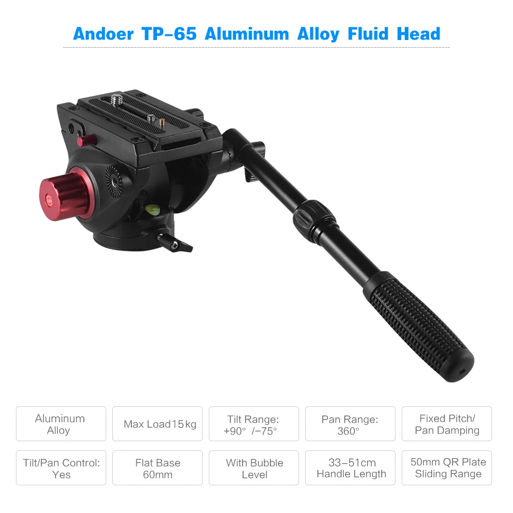 Best . (35% Off) Buy Andoer TP 65 Aluminum Fluid Drag Hydraulic Head Three Dimensional Tripod Head Panoramic Shooting for Photography Video Recording Price Online.
