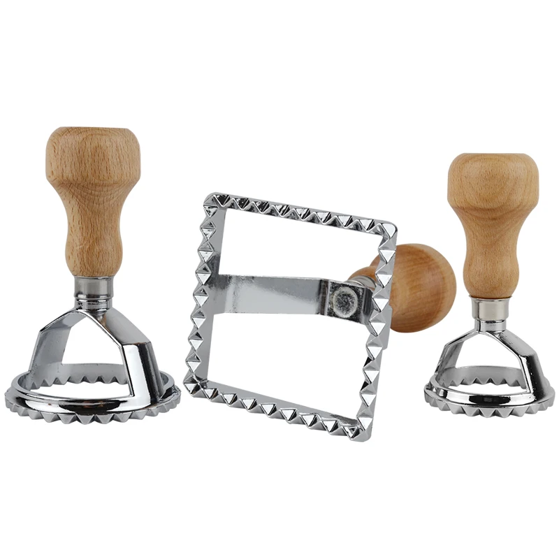 Special Offer Classical Italian Round and Square Pasta Cutter Kitchen Pasta Mold Tool Ravioli Stamp Cutter With Beach Wooden Handle Discount 27% Today!
