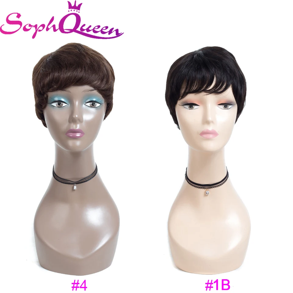 Product Name: Soph Queen #4 Color Short Human Hair Wigs For Black Women Brazilian No Remy Hair Short Bob Wig Natural Wave 61g No Smell H.ANNA