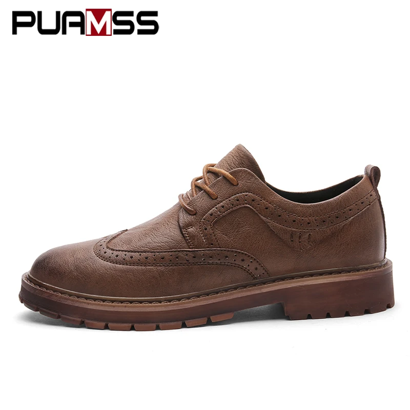 Special Offer Autumn New Men Martens Shoes Brogue Casual Shoes Men Genuine Leather Shoes Work Business Casual Sneakers Discount 50% Today!